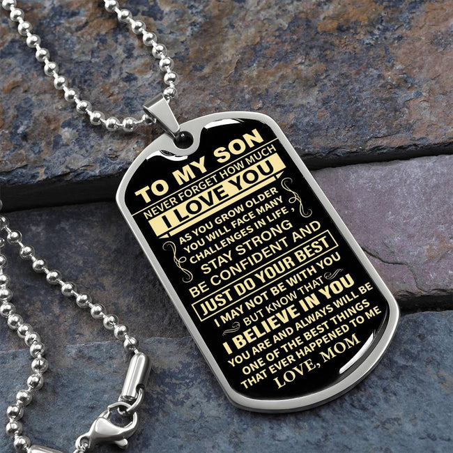 To My Son - Never Forget How Much I love You, Love Mom - Dog Tag - Military Ball Chain