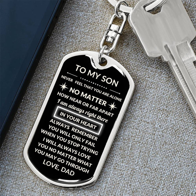 To My Son, I will Always Be There, Love Dad - Dog Tag Keychain